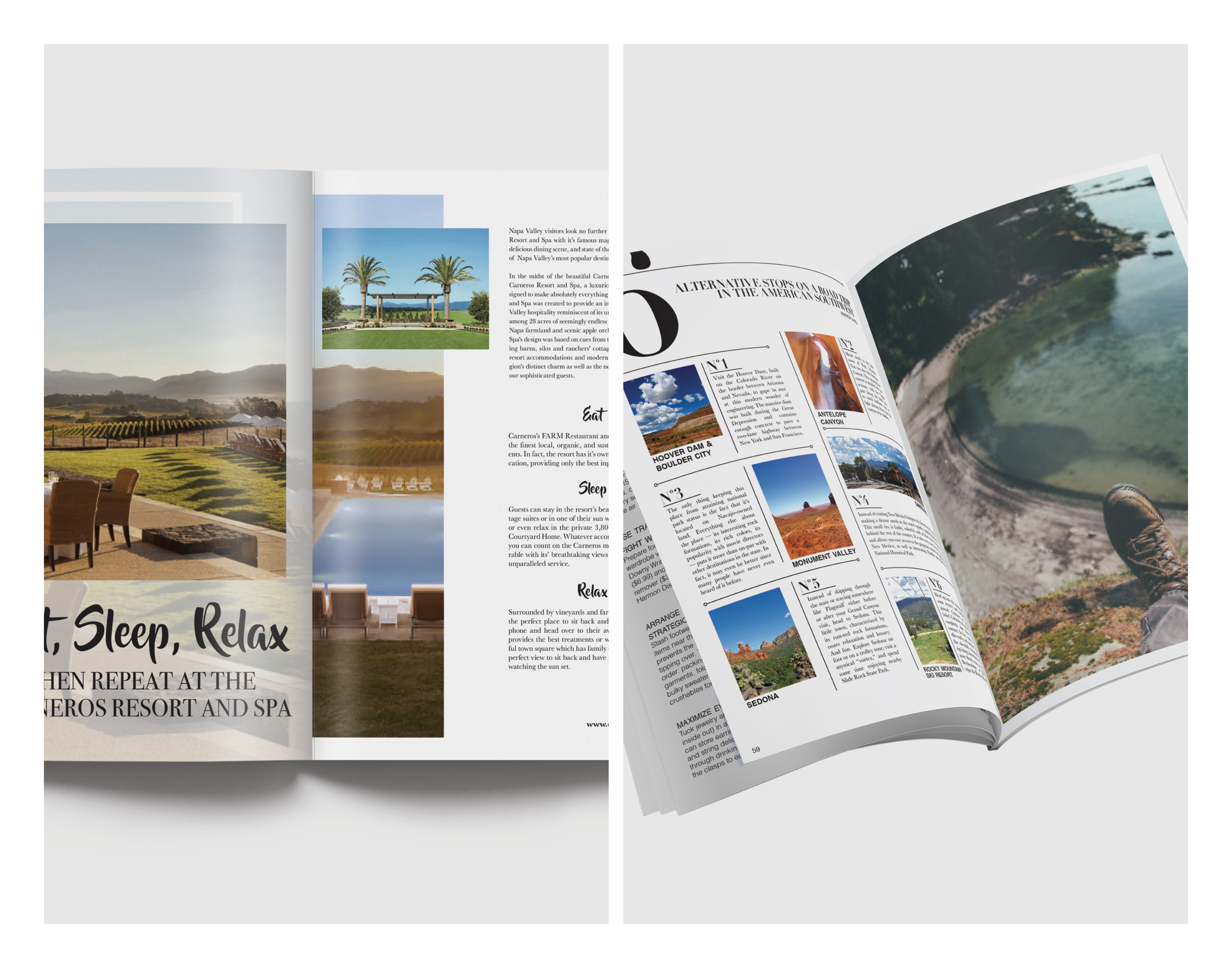 In order to emphasize the content, I strategically utilized white space throughout the magazine’s layout. This minimalistic approach allowed the images to take center stage, capturing the readers’ attention and immersing them in the captivating destinations showcased within the publication.