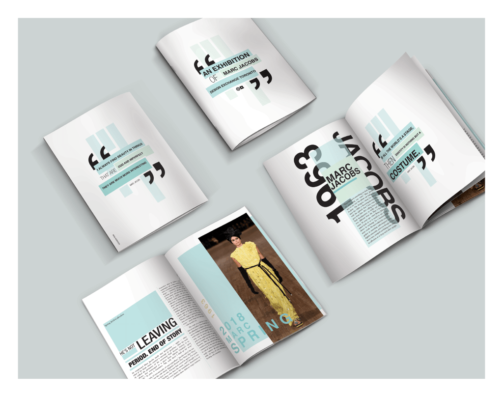 Note: This brochure contains up to 2,000 words of text, focusing predominantly on the exploration of Marc Jacobs’ use of typography in fashion design.